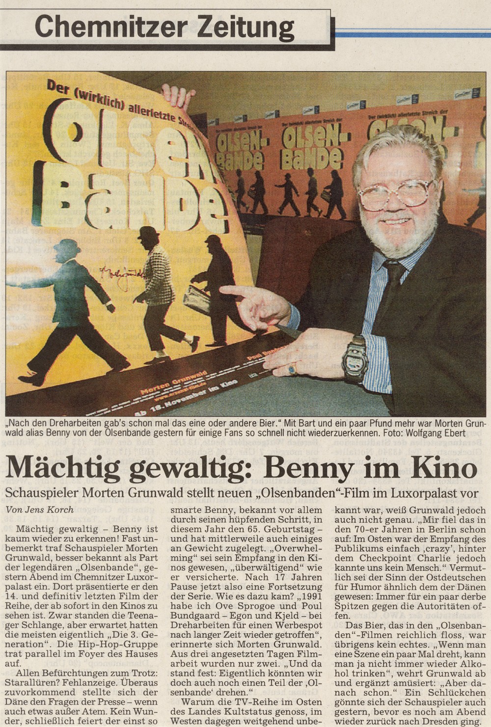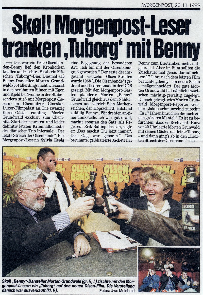 Morgenpost, 1999-11-20 Morten Grunwald zur Premiere des 14. Films im Chemnitzer Kino Cinestar. (Vielen Dank an Mario Metzner für den Artikel) |