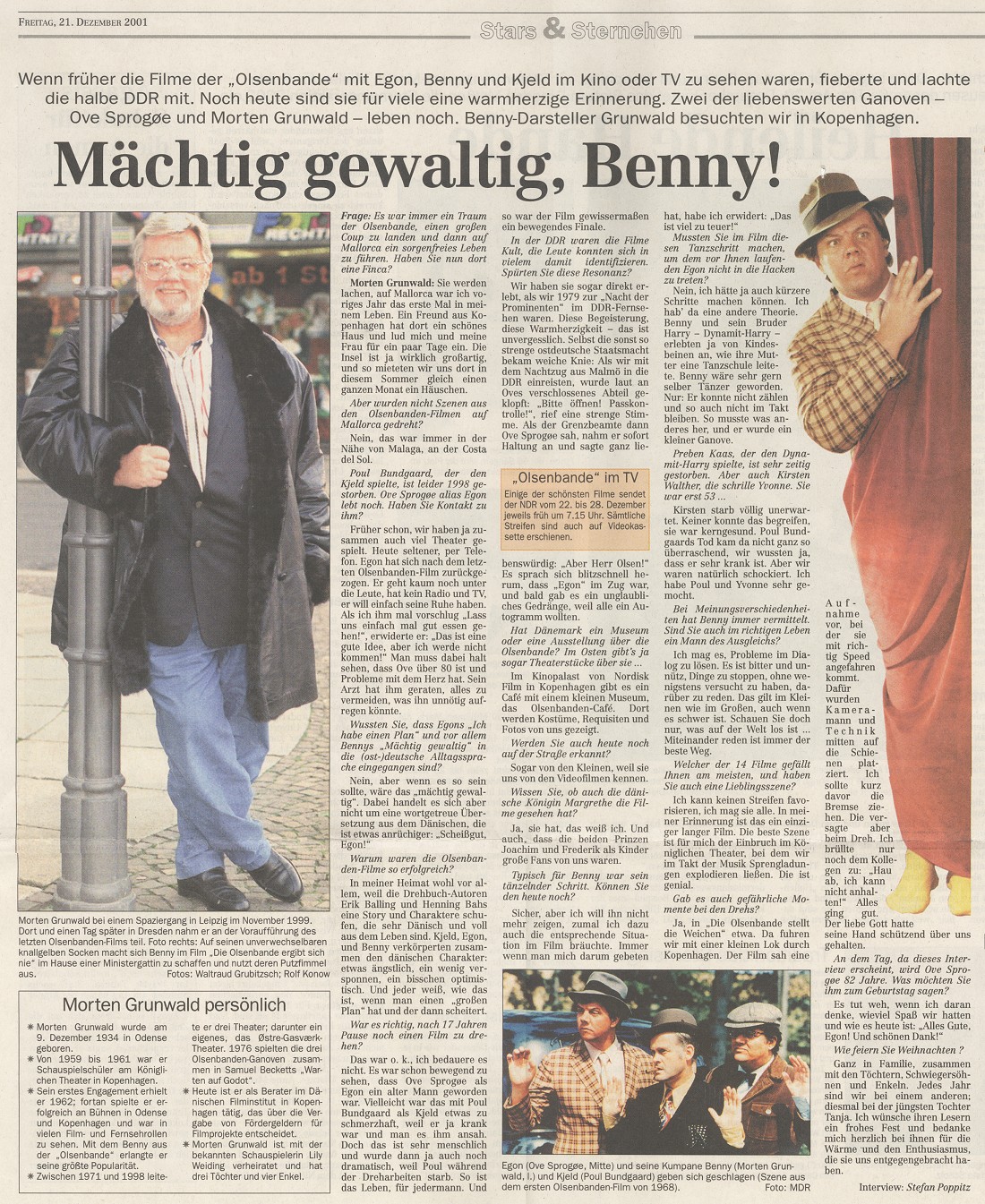 Leipziger Volkszeitung, 2001-12-21, S. J3 Von Stefan Poppitz Interview mit Morten Grunwald (Vielen Dank an Stefan Poppitz für den Artikel) |