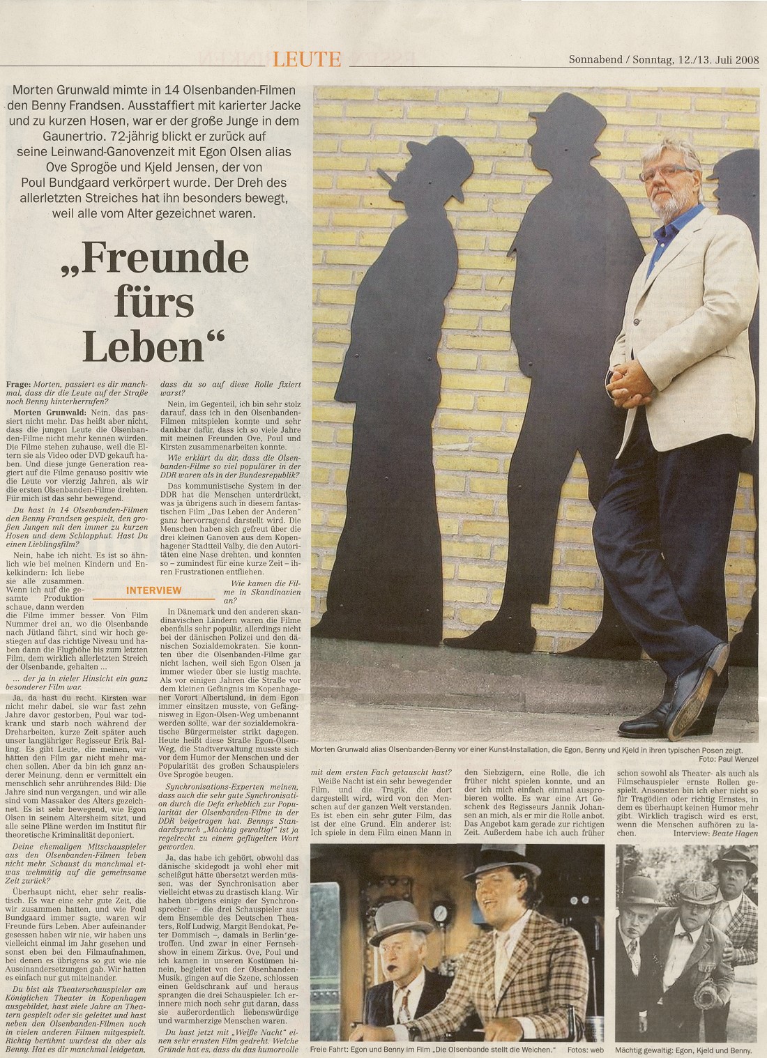Leipziger Volkszeitung, 2008-07-12/13, S. J4 Von Beate Hagen Interview mit Morten Grunwald (auch erschienen in der Ostsee Zeitung am 16./17.8.2008) |