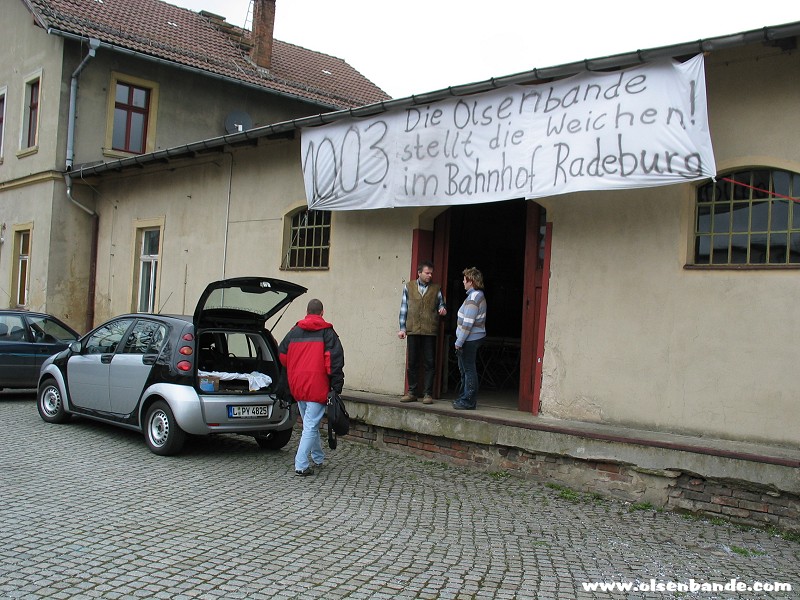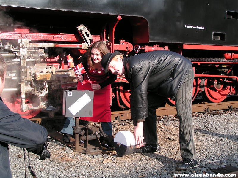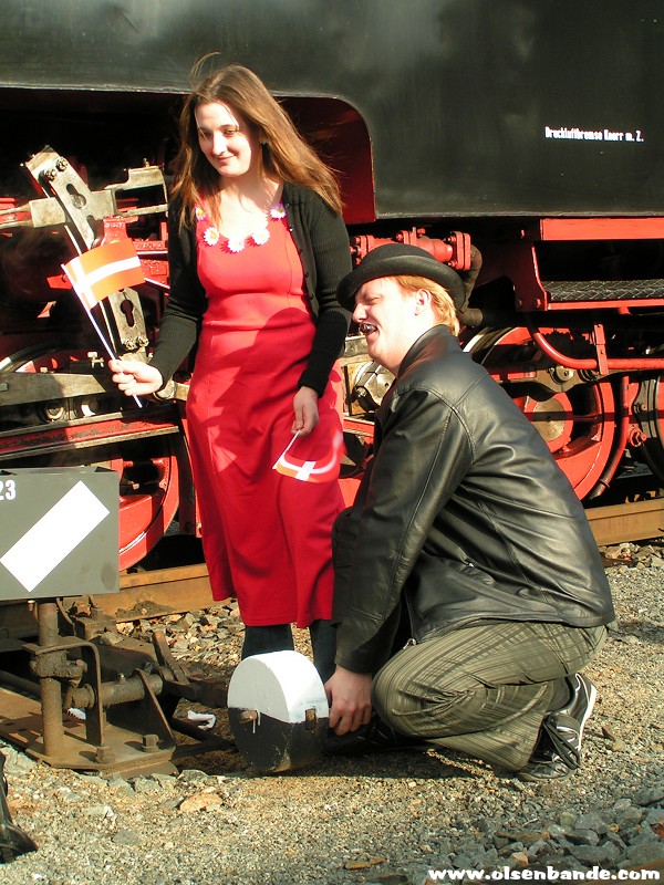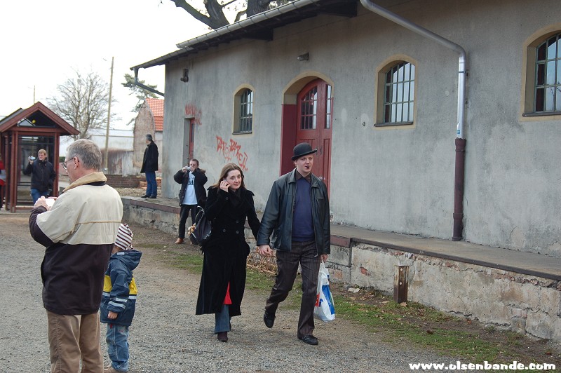 die Eisenbahn mit den Fans kommt anEgon und Yvonne treffen einSascha alias Egon Olsen stellt die Weichen...