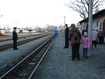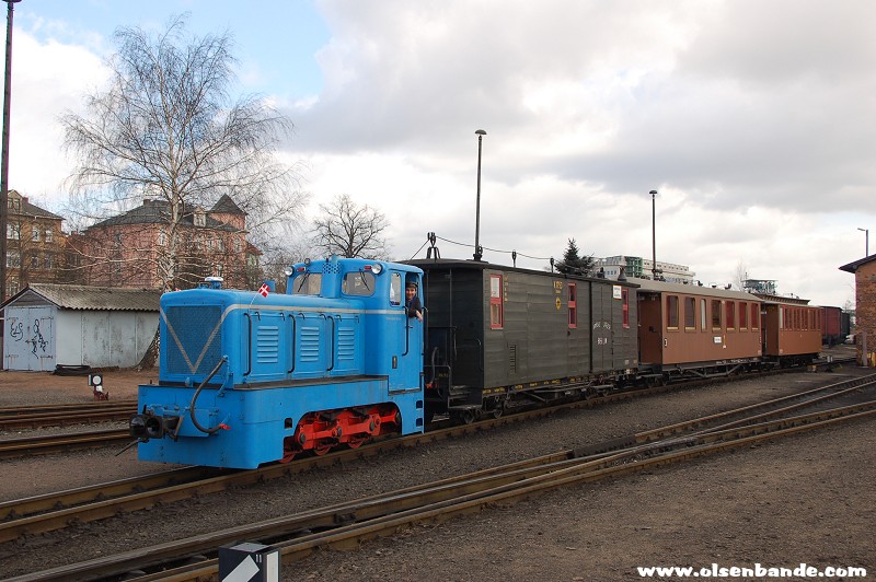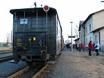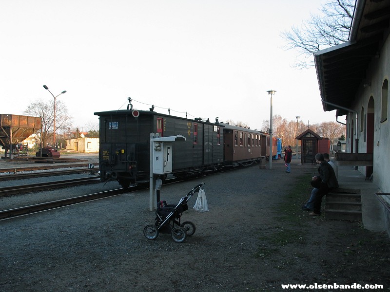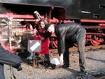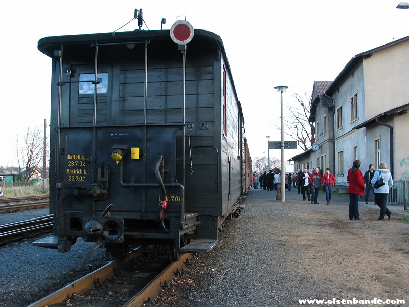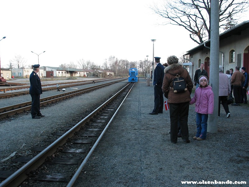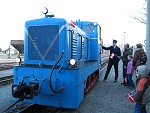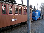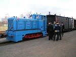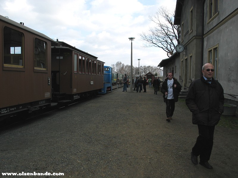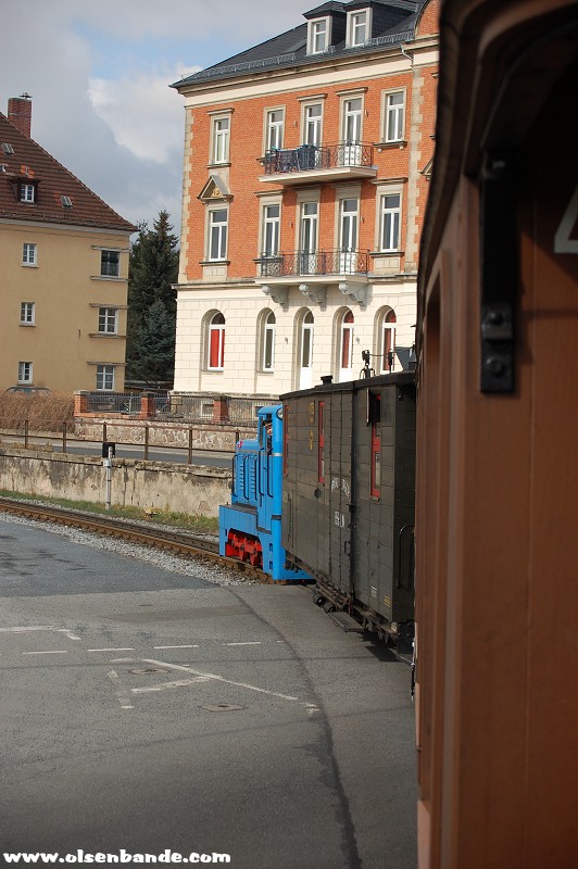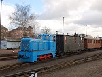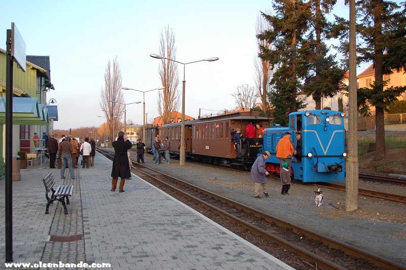 die Traditionsbahn startet in RadebeulDie Rangierlok der Traditionsbahn trifft ein
