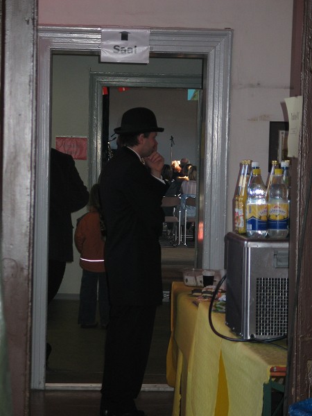 der Veranstalter Frank Mietzsch trat auch als Egon aufeine Jazzband spielte die berühmte Olsen-Melodie