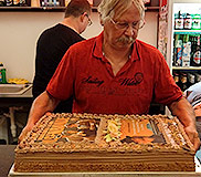 Aber etwas fehlte zum Geburtstag noch: der Kuchen. Olsenbandenfan Kalle machte uns etwas sprachlos, als er völlig unerwartet mit einer riesigen Geburtstagstorte vorbeikam. Eine gelungene und leckere Überraschung.