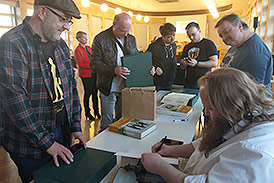 Verlagschef Søren Hørdum und Buchautor Christian Monggaard stellten das 2,5 kg Werk vor und beantworteten auch viele Fragen der Besucher. Die Dänen hatten nicht nur die normale Ausgabe mitgebracht, sondern auch die auf 300 Stück limitierte Edition in einer Franz Jäger Box. Beide Ausgaben können übrigens nun auch bei Amazon.de bestellt werden: normal