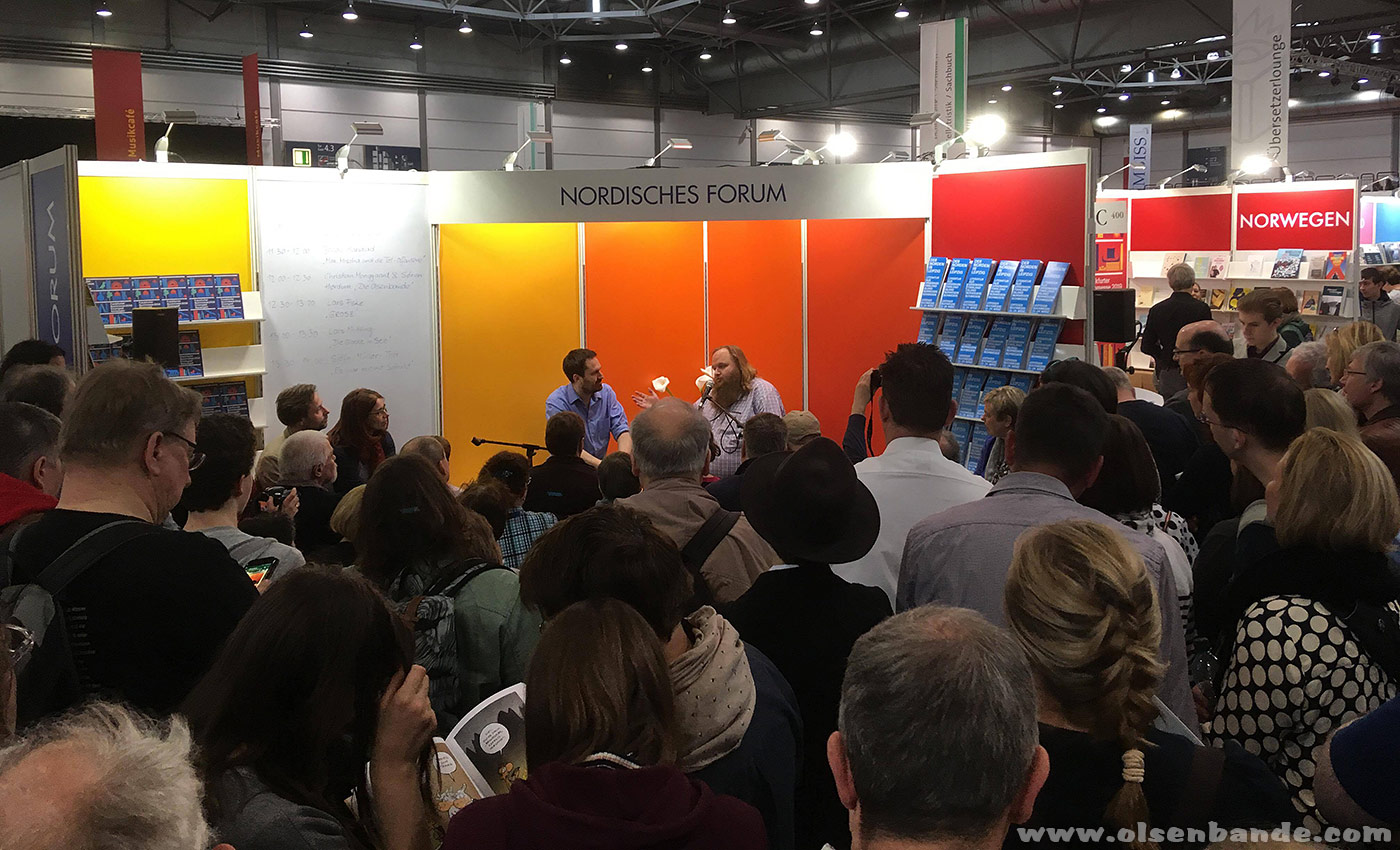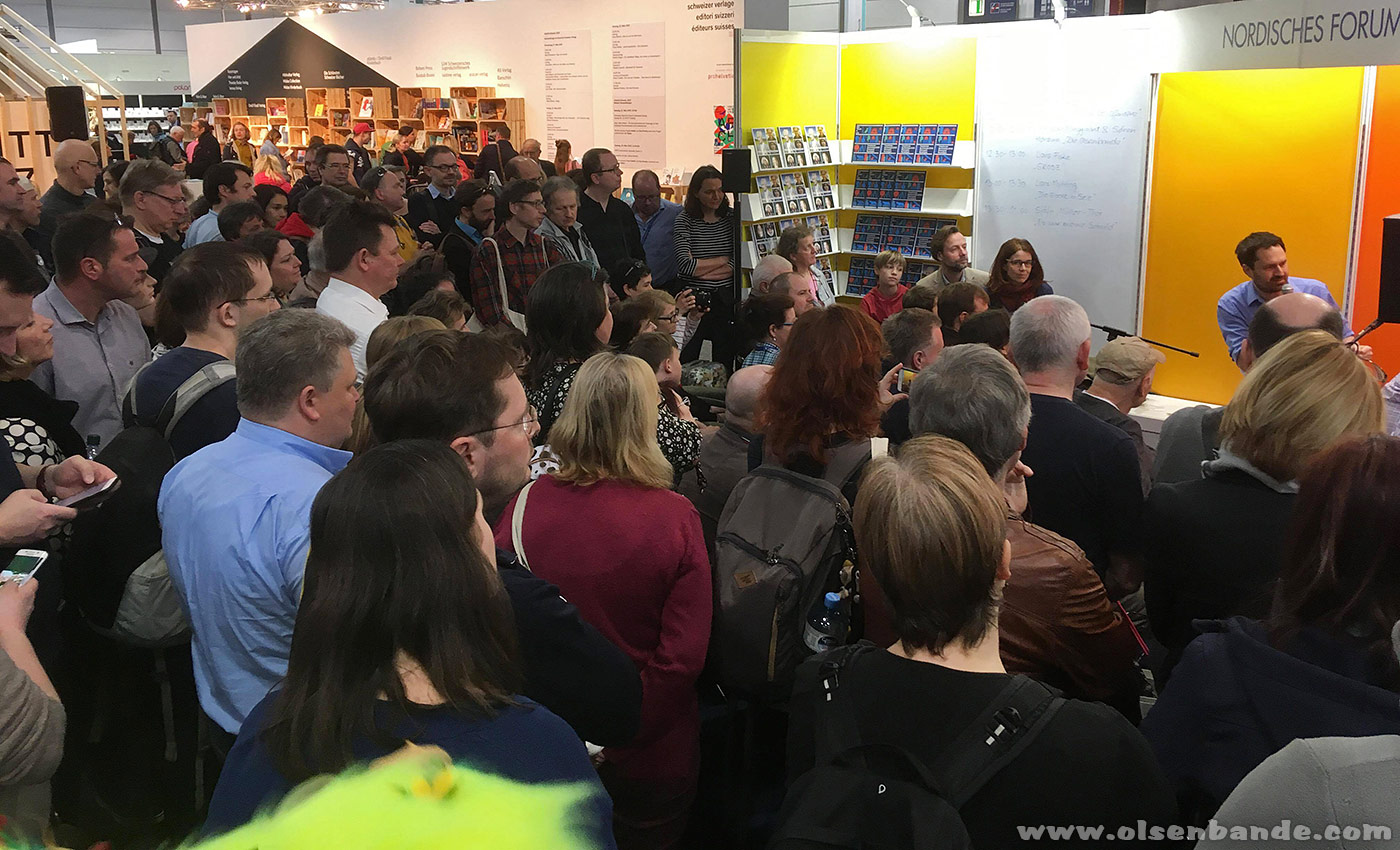 Direkt auf der Buchmesse war der Verlag natürlich auch. Am Wochenende (23./24.3.2019) waren sie im Nordischen Forum. Bei der Präsentation war das Interesse riesig, wie man auf den Fotos gut sehen kann.
