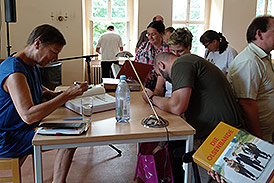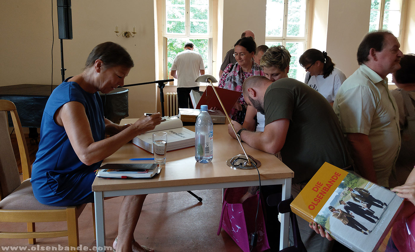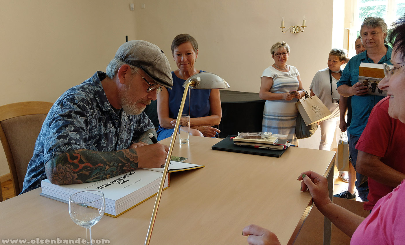 Der zweite Programmpunkt war eine Lesung aus dem neuen Buch "Die Olsenbande" mit der Übersetzerin Janine Strahl-Oesterreich. Das kam sehr gut an und so nutzten viele die Möglichkeit das Buch direkt vor Ort zu kaufen und signieren zu lassen. Dies war gleichzeitig der Auftakt für unsere Lesereise die wir gerade vorbereiten. Veranstalter können sich bei Interesse übrigens gern bei uns melden.