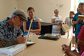 Jes Holtsø alias "Børge" war schon vor seinem eigentlichen Konzertauftritt vor Ort. Ganz spontan entschied er sich daher ebenfalls Autogramme in das Olsenbanden-Buch zu schreiben.