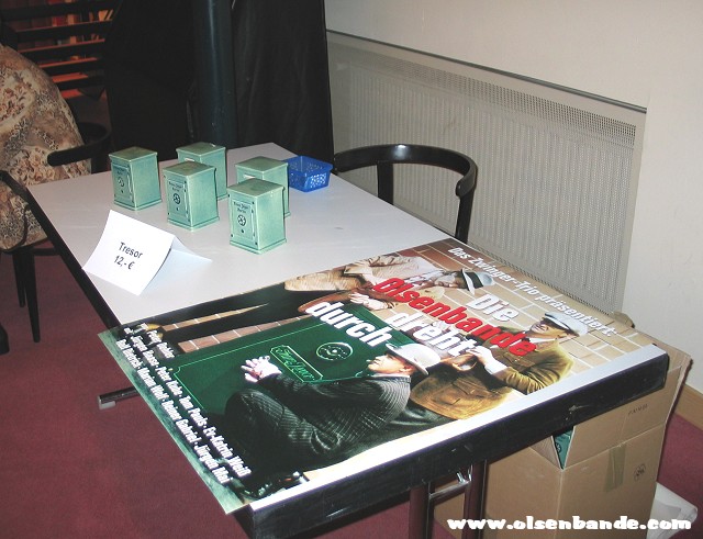 Im Foyer wurden vor der Vorstellung hübsche Franz Jäger Tresore aus Keramik mit den Autogrammen des Zwingertrios verkauft. Die Franz Jäger Tresore dienen nun als Sparbüchsen und wurden im Auftrag eines Laustizers verkauft.