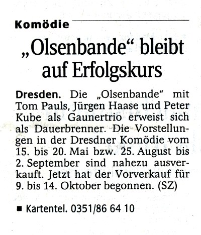 Sächsische Zeitung, 2001-02-06, ' "Olsenbande" bleibt auf Erfolgskurs' |