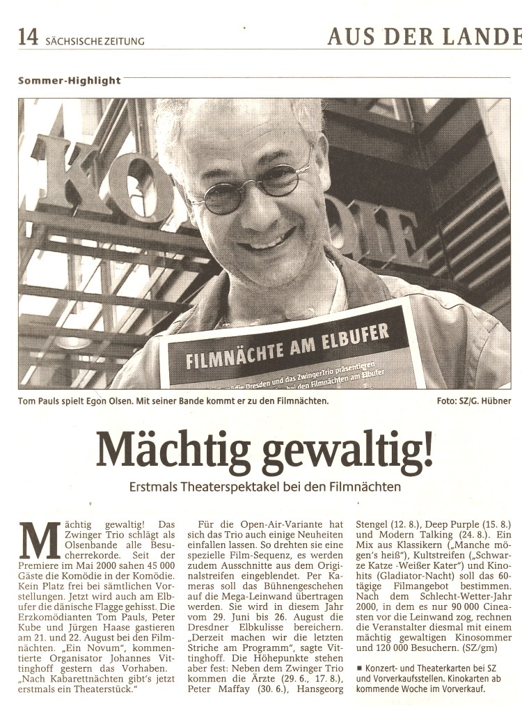Sächsische Zeitung, 2001-08-20, zum Auftritt bei den Filmnächten Dresden |