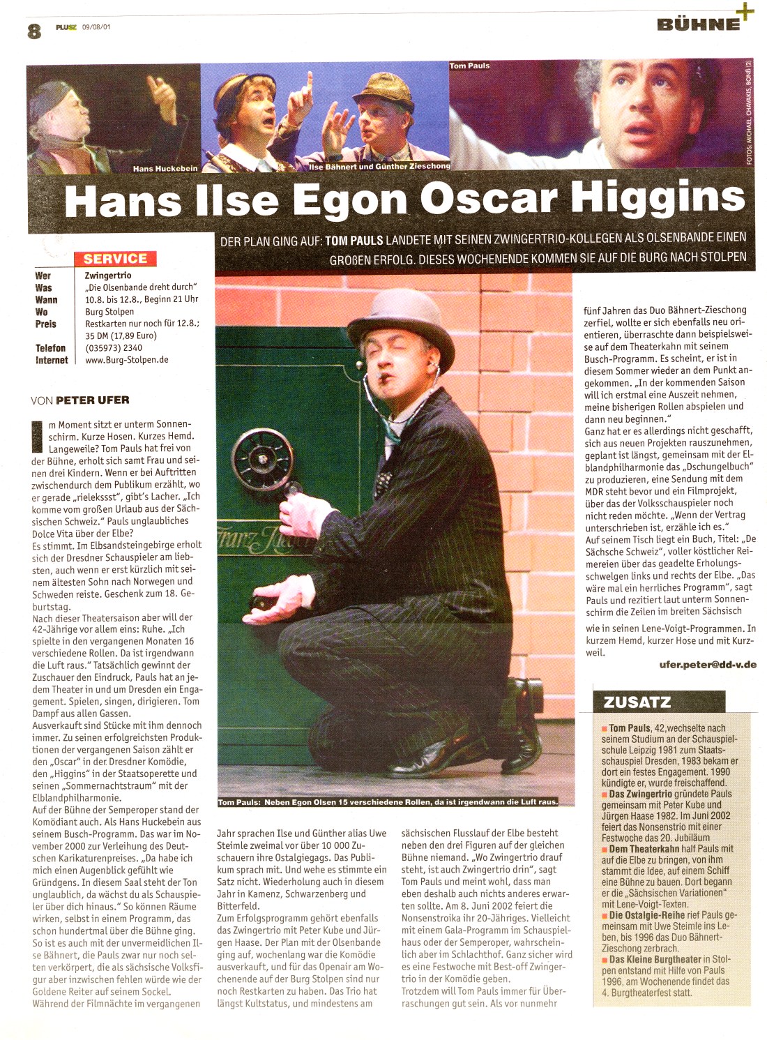 PluSZ, 2001-08-09, Seite 8, zum Gastspiel auf der Burg Stolpen zum 4. Burg-Theater-Festival und zu Tom Pauls |