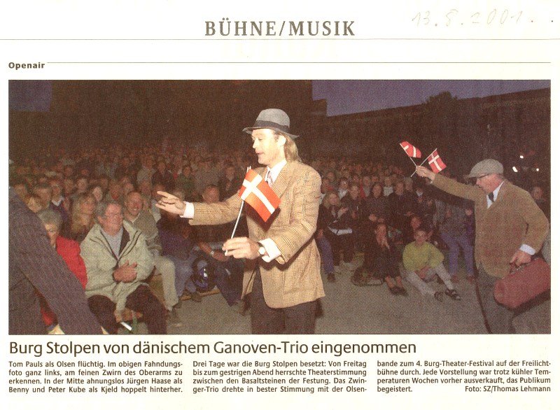Sächsische Zeitung, 2001-08-13, zum Gastspiel auf der Burg Stolpen zum 4. Burg-Theater-Festival |