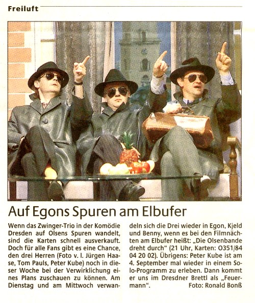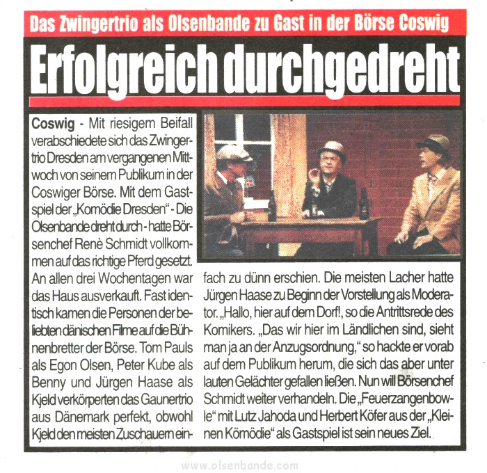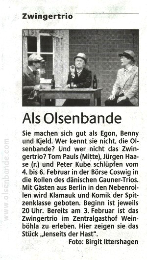 StadtSpiegel, 2002-02-10, zum Gastspiel in der Börse Coswig Anmerkung: es spielen Peter Kube als Kjeld und Jürgen Haase als Benny (und nicht umgedreht) |