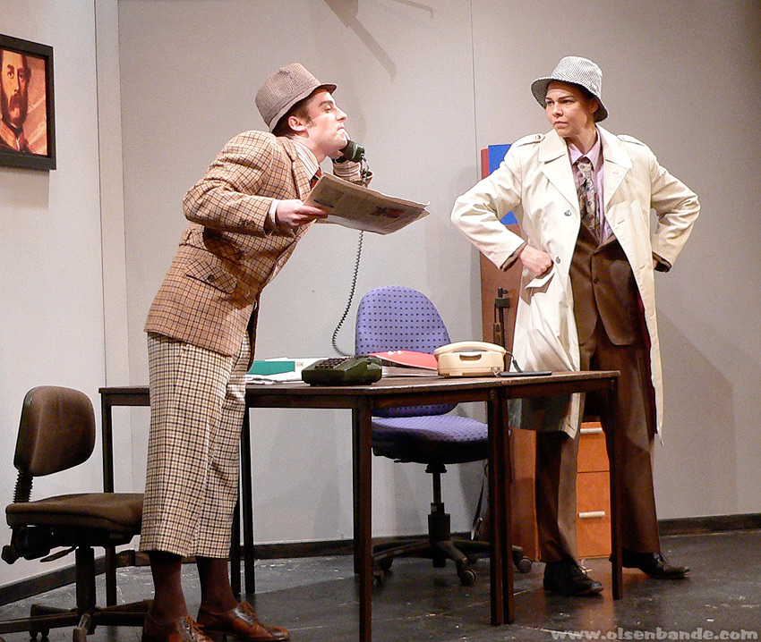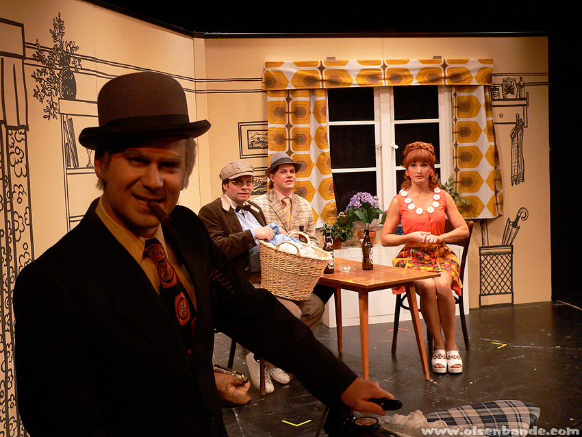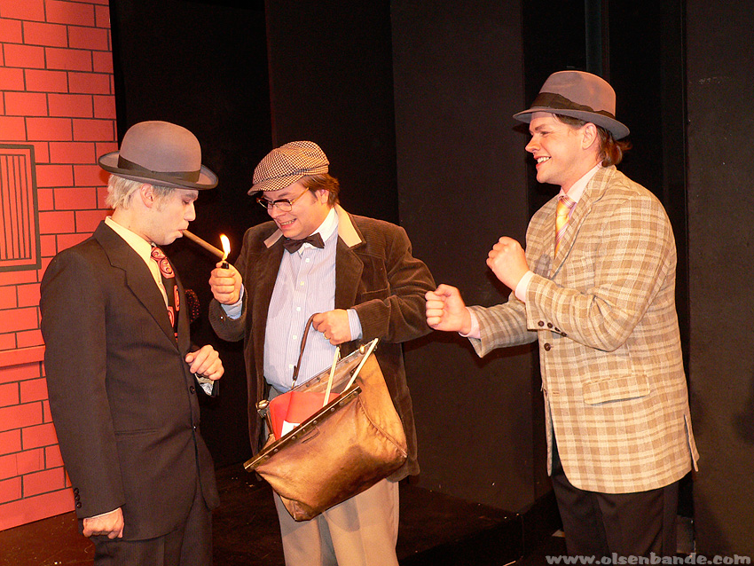 Pressemitteilung Egon ist wieder da „Sie werden Ihren Spaß daran haben“, verspricht Regisseur Wolfgang Bordel und meint damit die Generation, die quasi mit den „Olsenbanden-Filmen“ aufgewachsen ist und auch die jüngeren Zuschauer, für die drei ideenreichen, aber erfolglosen Gauner aus Dänemark schon ein Legende aus längst vergangener Zeit sind. Zwischen 1968 und 1998 entstanden 14 Filme, alle nach dem gleichen Strickmuster. Egon Olsen kommt aus dem Knast, hat einen Plan und der soll in die Tat umgesetzt werden – aber zu guter Letzt geht irgendwas schief und Egon kommt wieder in den Knast. Zwischen durch sorgt Yvonne, die stets auf’s Äußere bedachte Gattin von Kjeld für Ordnung und den guten Ruf. Regisseur Wolfgang Bordel setzt diesmal voll und ganz auf die dänischen Originale und deren typischen Gesten – bis hin zum berühmten Gang der Dreierbande – und Sprachgewohnheiten, ja sogar die Stimmlagen ähneln den einstigen Synchronstimmen. Und die Schauspieler scheinen alles gegeben zu haben, um so originalgetreu, wie Egon (Martin Schneider), Benny (Tibor Oltyan), Kjeld (Torsten Schemmel) und Yvonne (Birgit Lenz) über die Bühne zu kommen. Also die Olsenbande ersteht tatsächlich wieder auf. Allerdings hat Autor Peter Dehler aus 13 der Olsenbanden-Filme ein Theaterstück gemacht. Da geht natürlich um etliche Millionen, aber auch die Zukunft Dänemarks und jede Menge Butter. Aber da ist auch die Superschurkin Bang Johansen (Miriam Hornik), sie hat sogar das Ansinnen Egon zu ermorden. Da wird es Zeit für die beiden Kriminalisten Holm und Jensen sich aus ihrer Amtstube zu bequemen und Egon und seine Bande zu jagen. |