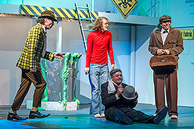 Pressemitteilung DIE OLSENBANDE II - DER GROSSE THEATERCOUP nach den Filmen von Erik Balling und Henning Bahs von Dirk Donat und Peter Grünig Das Gefängnistor öffnet sich – und Egon Olsen wird nicht wie gewohnt entlassen, sondern hinausgeworfen! Melone und Zigarre hinterher! Verdammte Amnestie! Um seine Ganovenehre und den Respekt seiner Komplizen Benny und Kjeld vor ihm zu retten, muss der begnadete Kopf der „lausigen Amateurverbrecherbande“ wohl oder übel wieder „rein in den Kahn“. Benny und Kjeld holen ihren Boss wie immer vom Gefängnis ab und gleich danach hat Egon auch schon den nächsten Plan: Denn er hat von dunklen Geistern erfahren, die ihre weltumspannend miesen Geschäfte planen und der Königin ihr Geschmeide vom Hals wegstehlen wollen! Egon vermasselt den Vaterlandsverrätern einen sauber ausgetüftelten Bruch beim Goldschmied an der Ecke – für die Krone, für Dänemark und vor allem natürlich für das Wohl der Bande, an dem die werdende Großmutter Yvonne, der picklige Børge und dessen schwangere Freundin Fie hängen. (Die beiden wollen nämlich heiraten und dafür muss schleunigst Geld her.) Die Spur führt ins Theater. Hinter die Kulissen, „voll rein in die Schmiere“! Der immer nur ans Essen denkende Kjeld muss den Hamlet geben, der zappelige Benny an den lautesten Stellen der Musik die Bohrmaschine schwingen. Und Egon Olsen improvisiert noch überm Abgrund des Orchestergrabens, mit Schißlaweng, einem Tropfen Vaterlandsliebe und leiser Sehnsucht nach dem Ruhestand. Im achten Olsenbanden-Film spielt sich eine der besten Szenen der vierzehnteiligen dänischen Kriminalkomödienserie ab, als sich die Bande während eines lauten Orchestereinsatzes im Takt der Musik mit Brecheisen und Sprengsätzen unbemerkt bis in den Zuschauerraum des Theaters vorarbeitet. Diesen Theatercoup von Egon, Kjeld und Benny kann man nun live im Eduard-von-Winterstein-Theater erleben, natürlich angereichert mit Yvonnes strengsten Ermahnungen, Kjelds besten Sprüchen, Bennys lustigsten Missgeschicken und Egons schönsten Flüchen. Mächtig! Gewaltig! Viel Vergnügen bei der OLSENBANDE II ! |